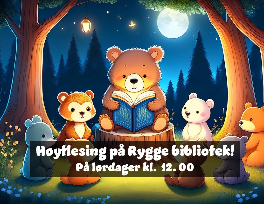Om dette arrangementet Tid 12:00 Pris Gratis Bibliotek Rygge bibliotek Målgruppe For familie Barn Høytlesing på Rygge bibliotek 28.03.26 Hver lørdag er det høytlesing i Pytten på Rygge bibliotek. Vi leser bøker som passer for barn i alderen 3-7 år. Velkommen til en koselig lesestund for hele familien! Gratis inngang.